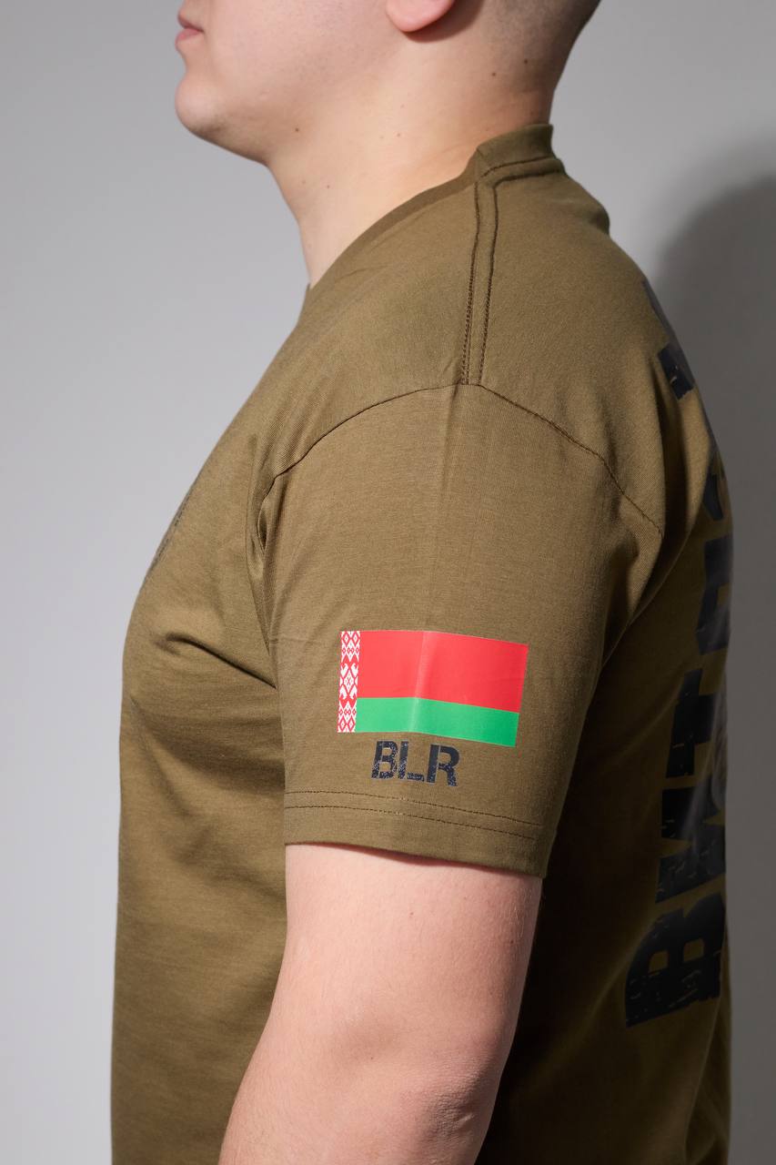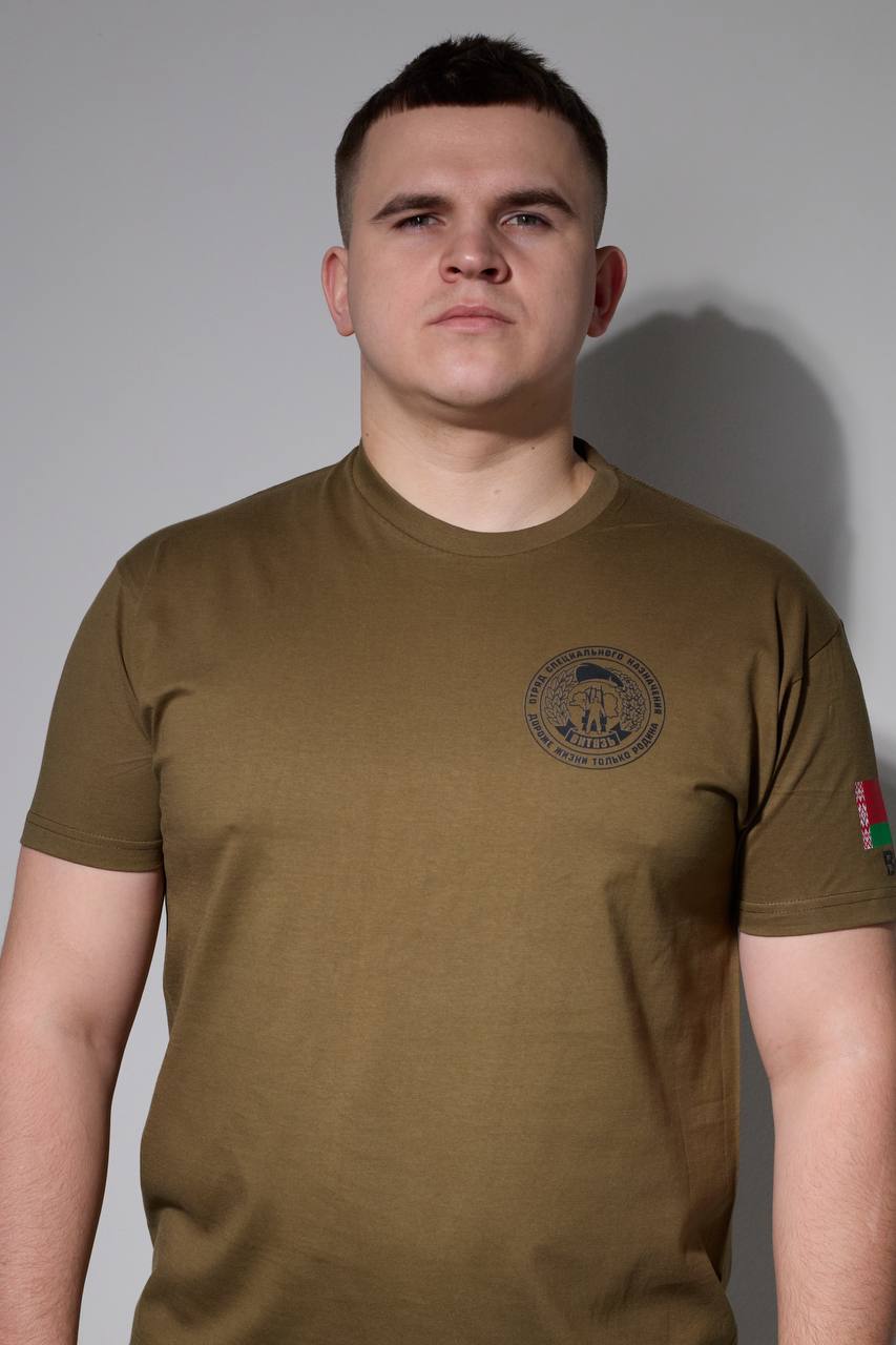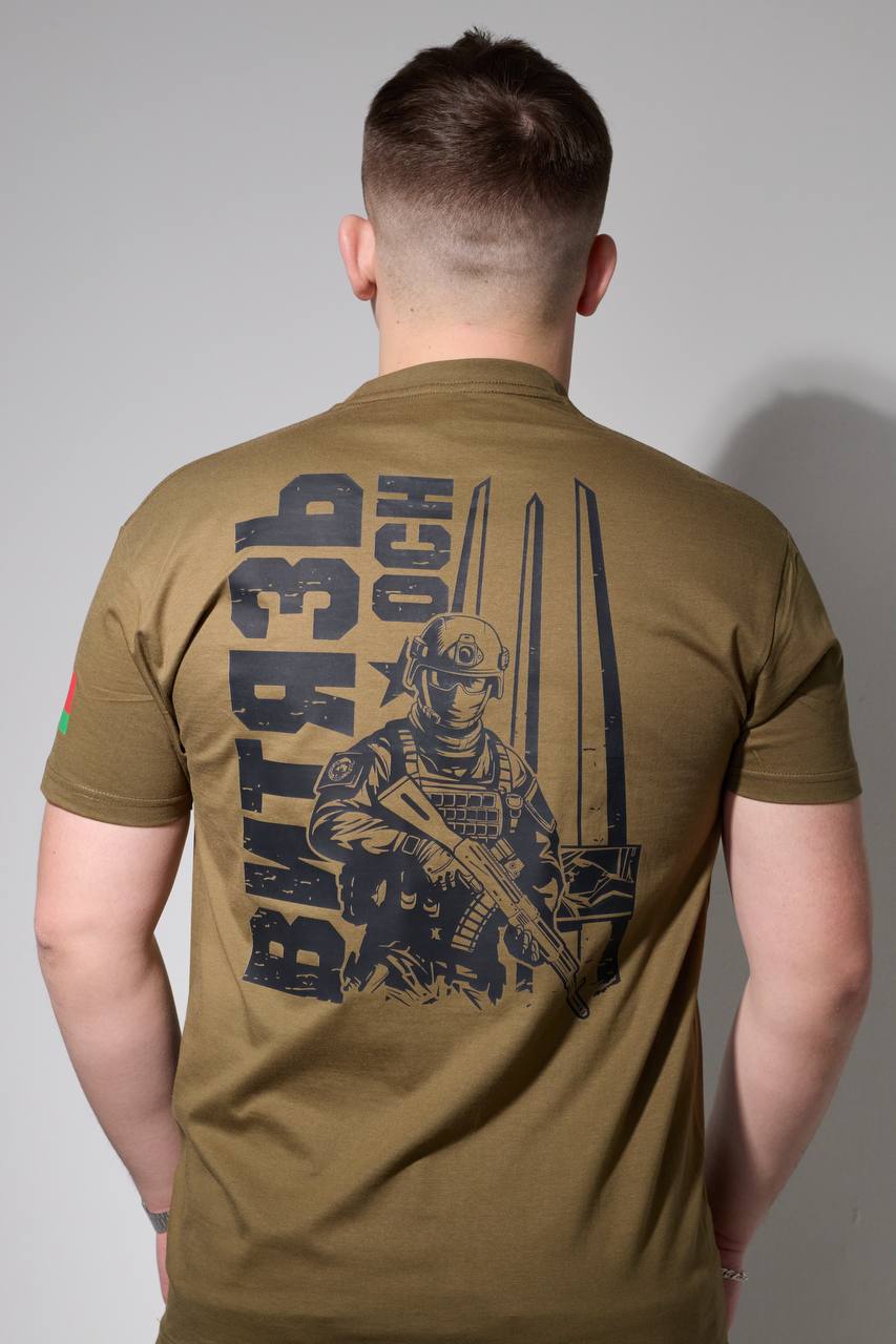 ФУТБОЛКА ОЛИВКОВАЯ С ПРИНТОМ ОСН "ВИТЯЗЬ" НА ГРУДИ И СПИНЕ И РУКАВЕ