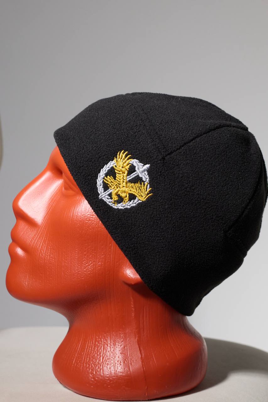 ШАПКА ЧЕРНАЯ С ВЫШИВКОЙ ЗНАКА ОТЛИЧИЯ ОМОН