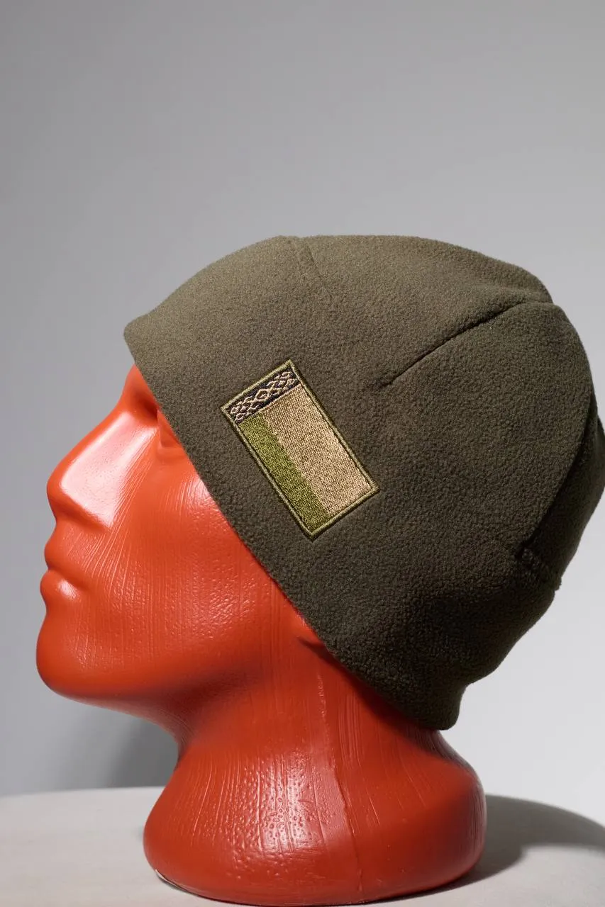 ШАПКА ОЛИВКОВАЯ С ВЫШИВКОЙ ЗНАКА ОТЛИЧИЯ ВОИНСКОЙ ЧАСТИ 7404 И ФЛАГА РБ