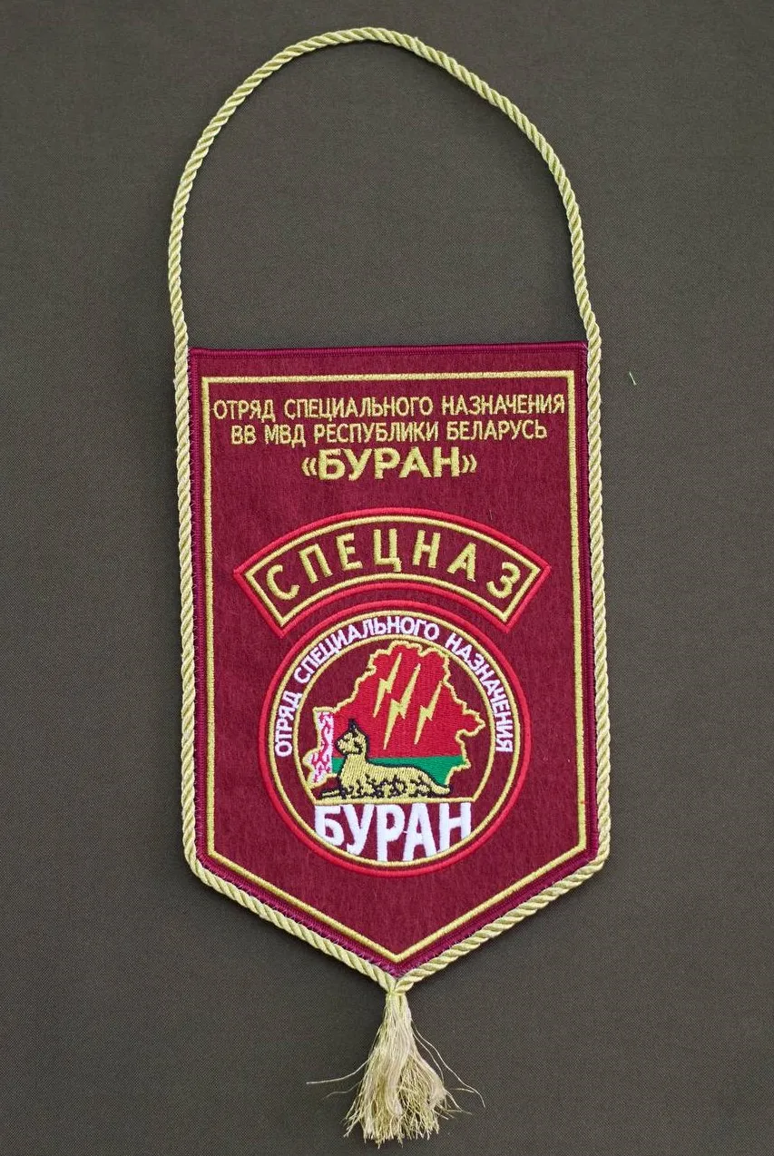 Вымпел с официальной символикой отряда специального назначения «Буран». Изготовлен методом машинной вышивки на краповой ткани. Четкая детализация, прочные нитки, стандартный формат.