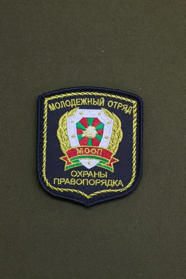 ШЕВРОН МООП ВЫШИТЫЙ ЦВЕТНЫМИ НИТЯМИ НА ЧЁРНОМ ГАБАРДИНЕ