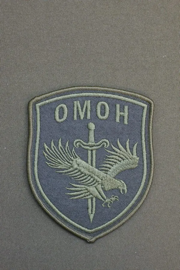 ШЕВРОН ОМОН МУС ВЫШИТЫЙ ОЛИВКОВЫМИ НИТКАМИ НА ОЛИВКОВОМ СУКНЕ