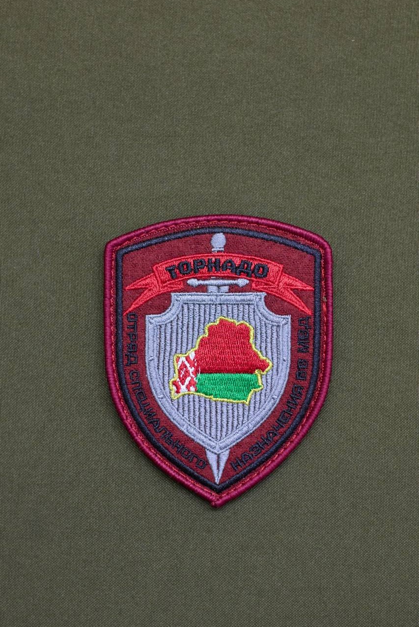 ШЕВРОН ОТРЯД СПЕЦИАЛЬНОГО НАЗНАЧЕНИЯ "ТОРНАДО" ВЫШИТЫЙ ЦВЕТНЫМИ НИТКАМИ НА КРАПОВОМ СУКНЕ