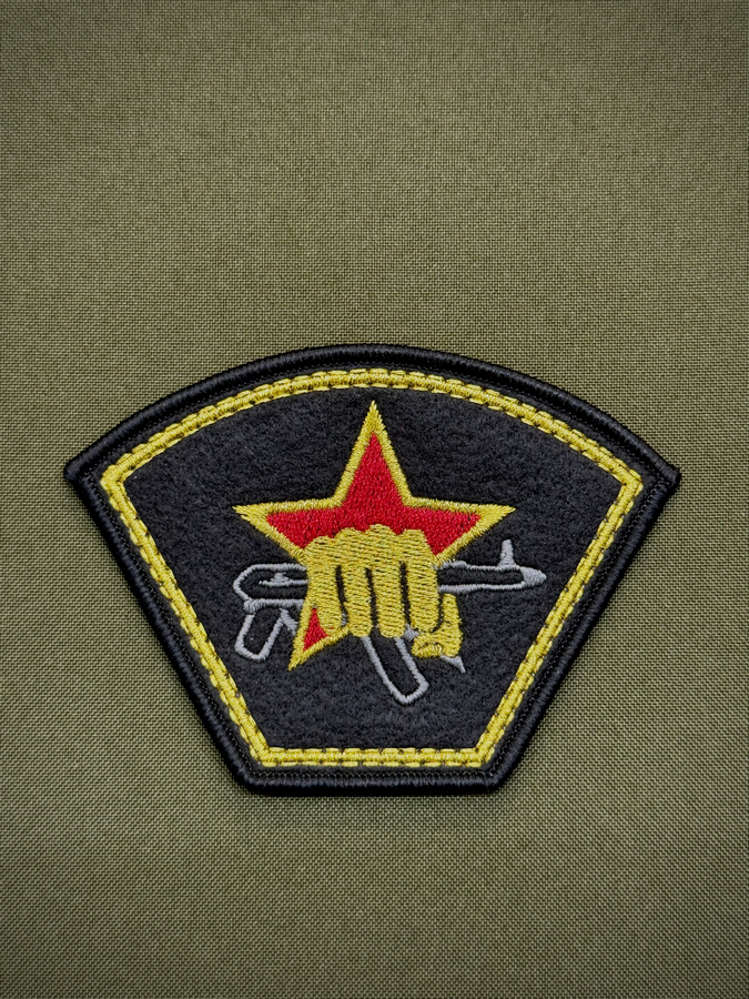 ЯРКИЙ И ВЫРАЗИТЕЛЬНЫЙ ШЕВРОН ПОДРАЗДЕЛЕНИЯ СПЕЦНАЗА В/Ч 5448 КУЛАК С АВТОМАТОМ ВЫПОЛНЕН КАЧЕСТВЕННОЙ МАШИННОЙ ВЫШИВКОЙ. ЭМБЛЕМА СИМВОЛИЗИРУЕТ СИЛУ, РЕШИТЕЛЬНОСТЬ И БОЕВОЕ БРАТСТВО НАСТОЯЩИХ ПРОФЕССИОНАЛОВ СВОЕГО ДЕЛА.