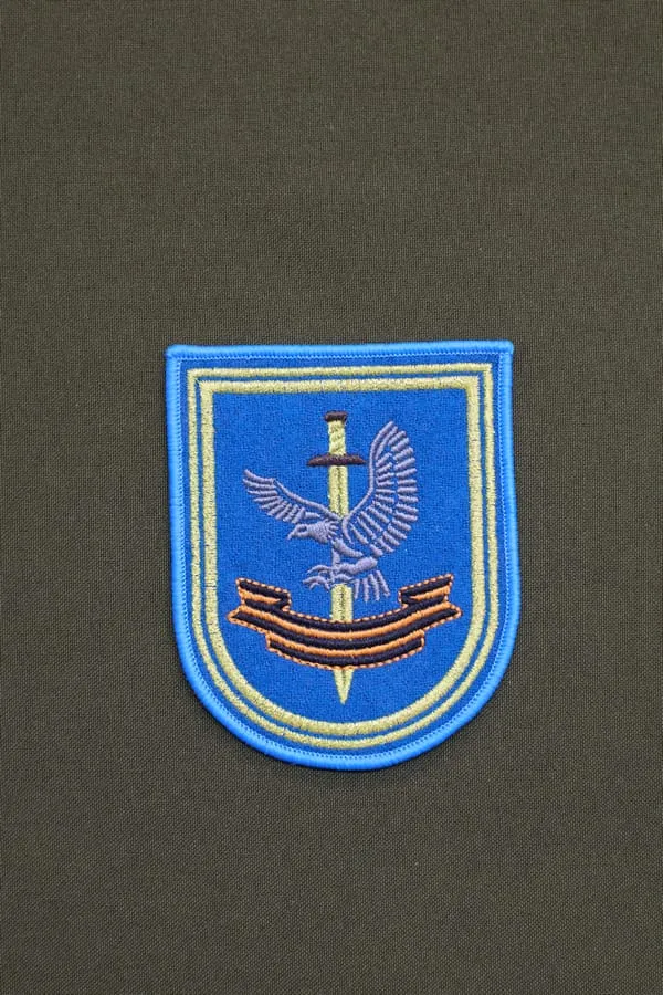 ШЕВРОН 33 ОТДЕЛЬНЫЙ ГВАРДЕЙСКИЙ ОТРЯД СПЕЦИАЛЬНОГО НАЗНАЧЕНИЯ ВЫШИТЫЙ ЦВЕТНЫМИ НИТКАМИ НА ГОЛУБОМ СУКНЕ