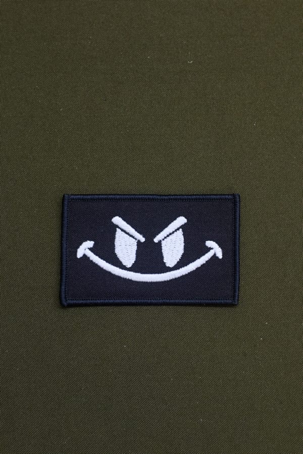 ШЕВРОН УЛЫБКА ВЫШИТЫЙ БЕЛЫМИ НИТКАМИ НА ЧЁРНОМ ГАБАРДИНЕ