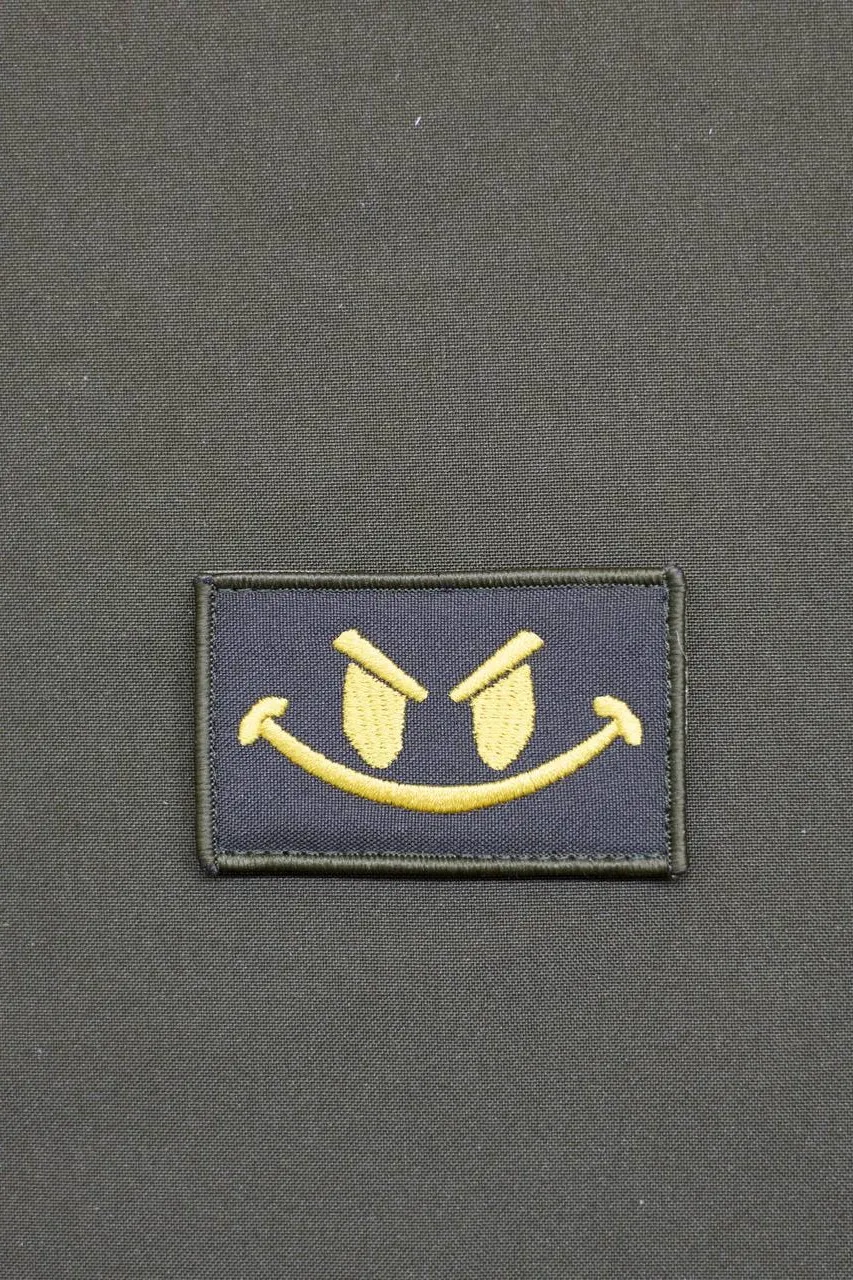 ШЕВРОН УЛЫБКА ВЫШИТЫЙ ЖЁЛТЫМИ НИТКАМИ НА ОЛИВКОВОМ ГАБАРДИНЕ